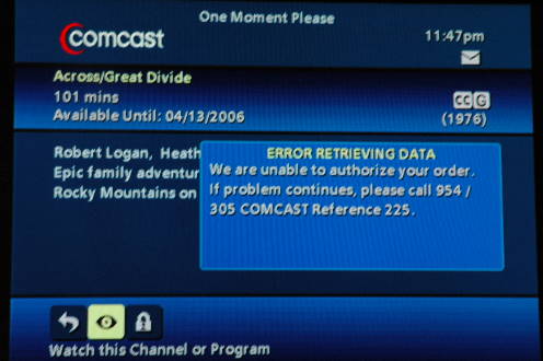 The "video On Demand" service still had some problems, and we were told by Comcast that a server was down.